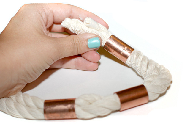 Wrap leather rope on both sides of the copper piping to keep in in place (and add a pop of color!)